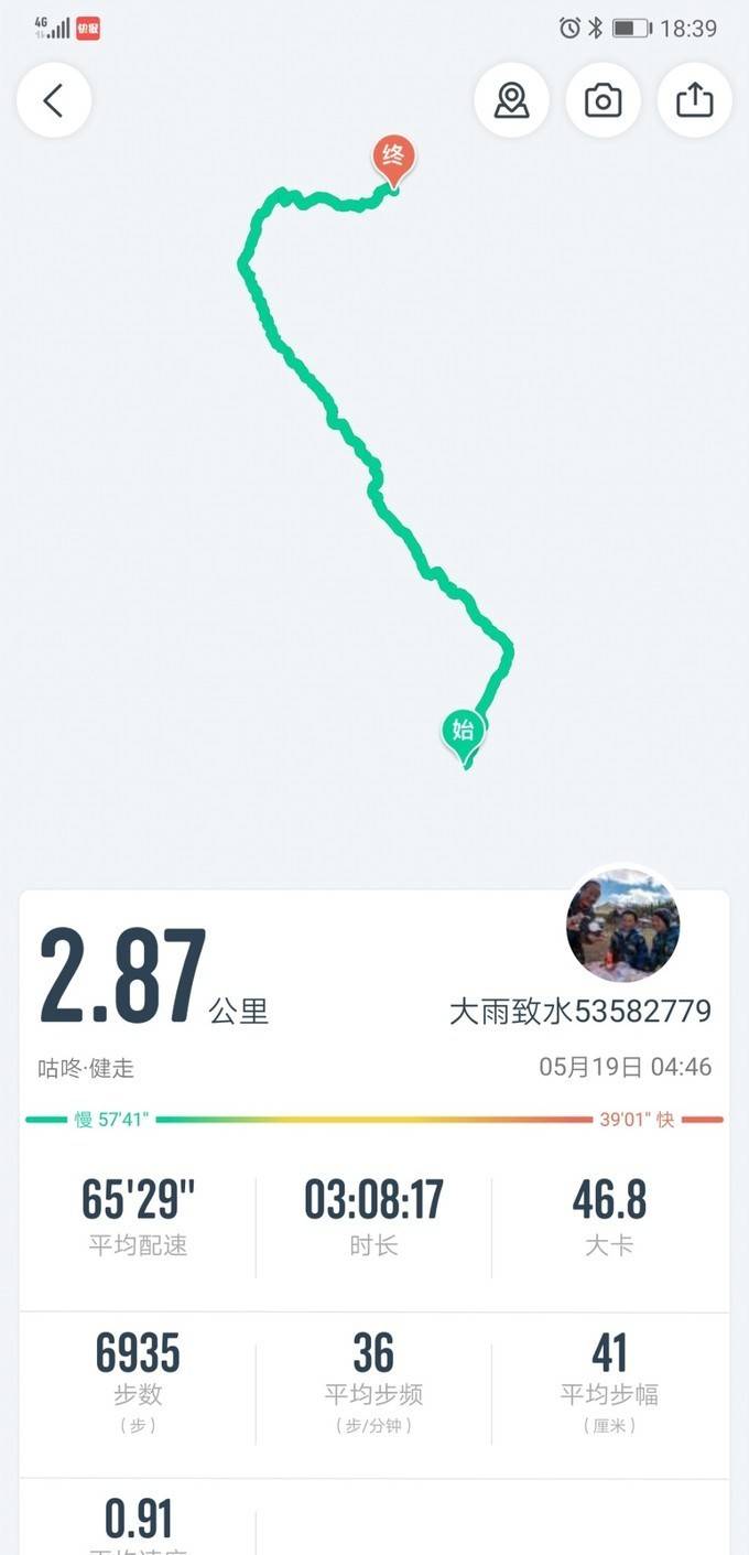 这是登峰的行程,2.87公里,海拔抬升700米(海拔4300米至5038米),耗时3小时。