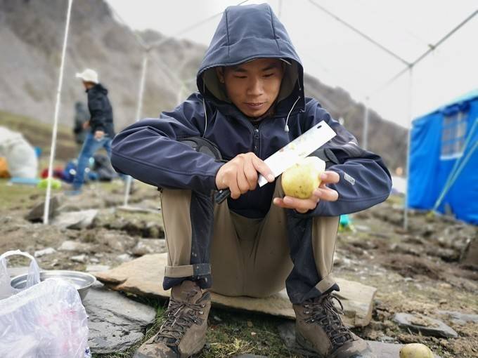 助理领队,开始劳作,为我们准备营地晚餐。