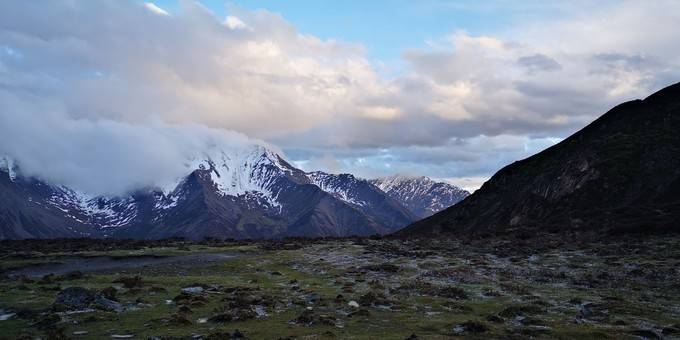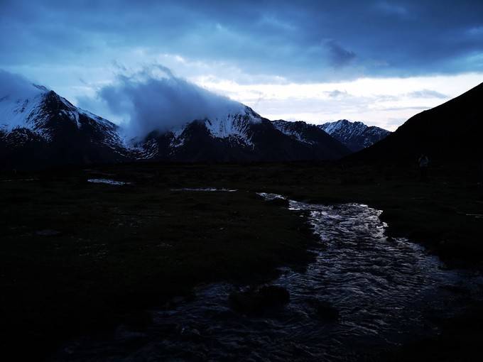 下山途中,听得三次轰隆声,以为打雷了但没有闪电。到达营地后,领队告知是雪崩,估计是二峰雪崩了。