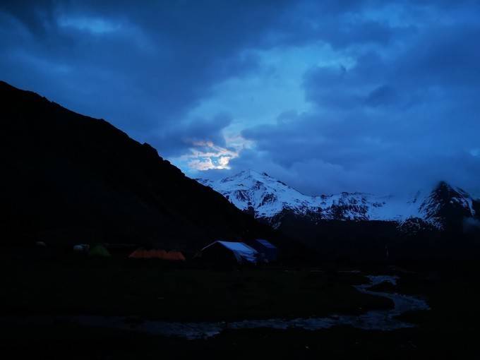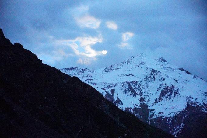 领队召集我们开会,正在部署明日冲锋登顶之际,月亮升起来了。