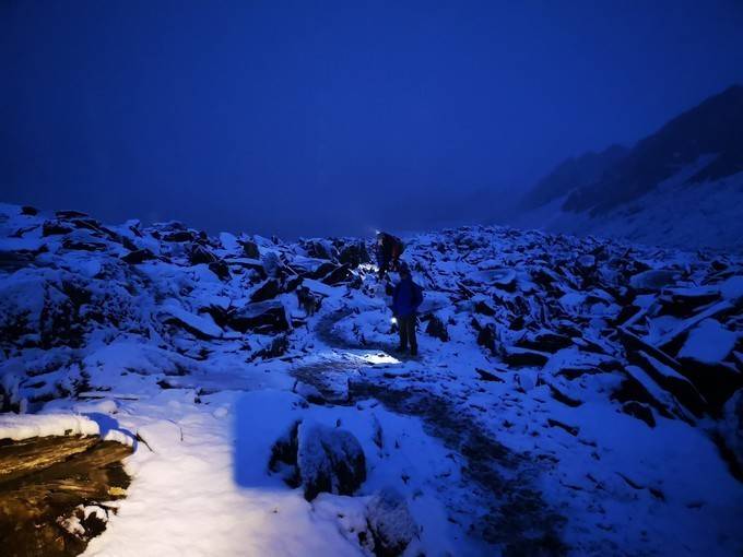 登山装备:-5℃睡袋(帐篷由主办方提供)、头灯、登山杖、雪套、冰爪(我出行之时,就没找到家里的冰爪,是在日隆镇买的)、登山鞋。