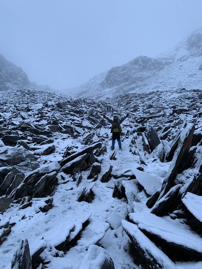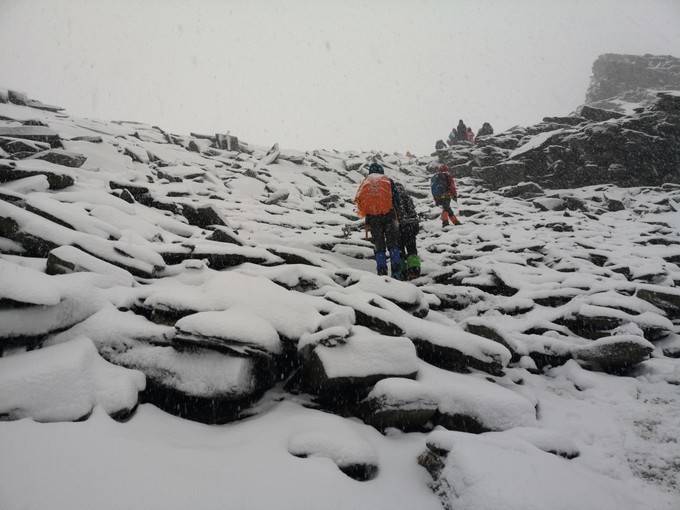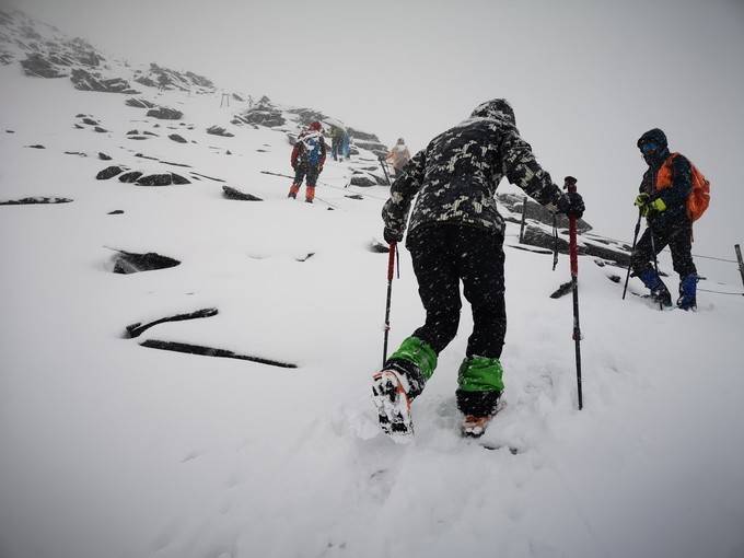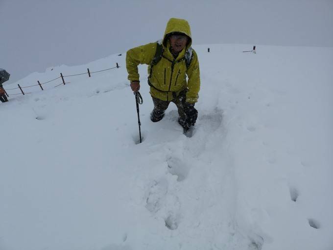 越临近峰顶,脚下的雪越深。