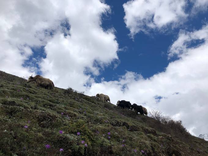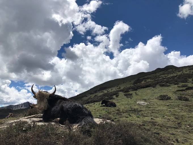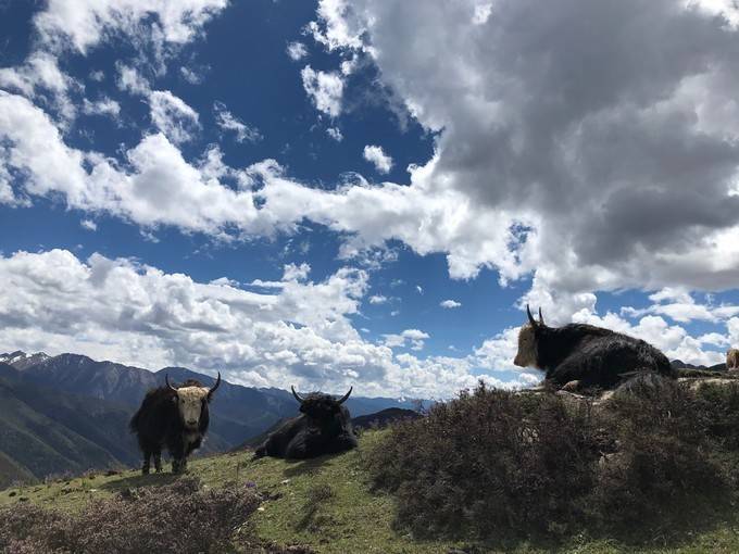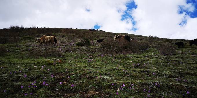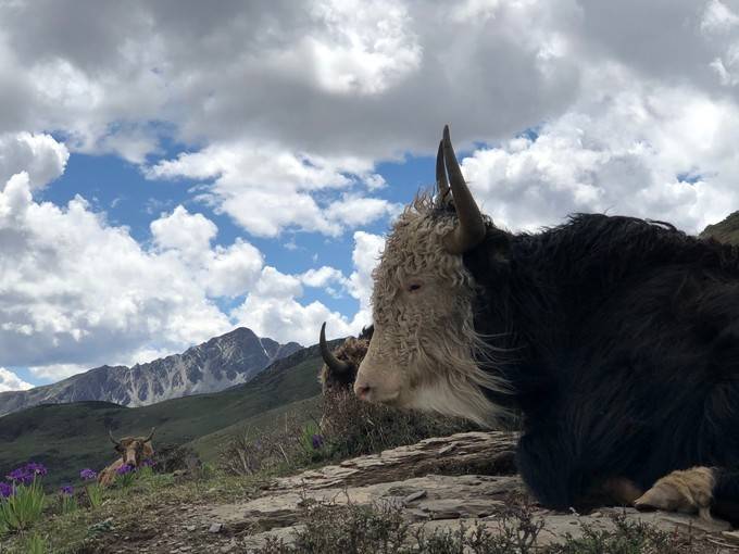 他特别怜惜这些雪山精灵,牦牛、狗狗、小猫......