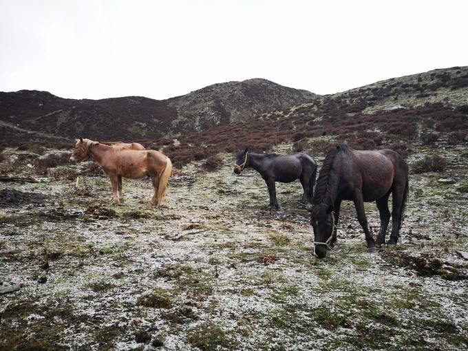 不畏冰雹风雪的马儿。