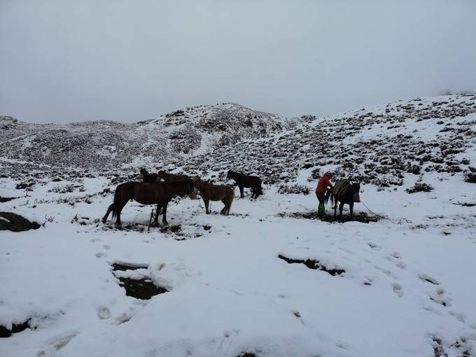特别鸣谢领队、助理领队、向导、马帮的辛勤劳动,既保障了大家安全,又保证了大家轻装前进,还在雪地里吃上了可口的营地晚餐、早餐,喝到了滚烫的开水。特别是领队惊蛰,边带队前行,还为大家美拍。