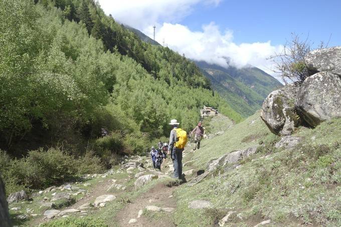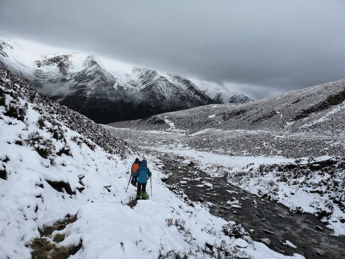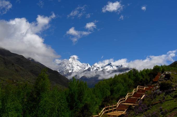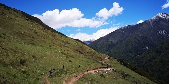 这是从 四姑娘山 景区至大本营的行程,12.9公里,海拔抬升1100米(3200米至4300),耗时六个多小时。