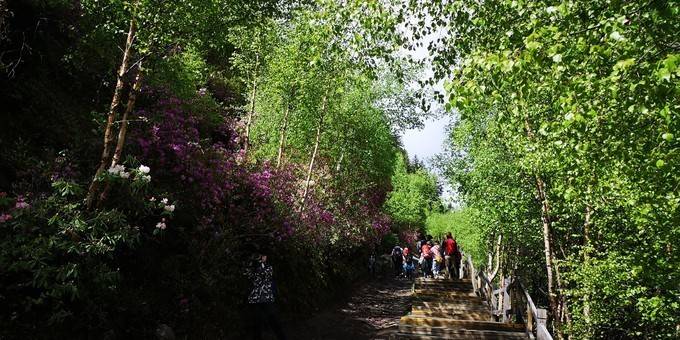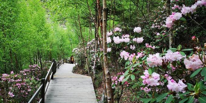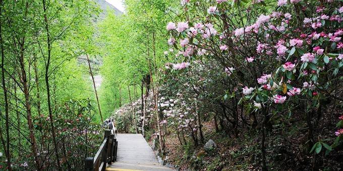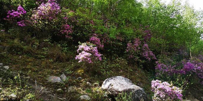 进入海子沟景区前,还有刚进入景区附近区域,高山杜鹃盛开,我们赶上了海子沟醉美时节。