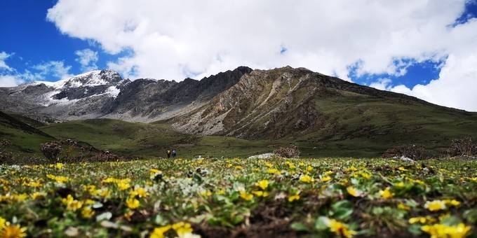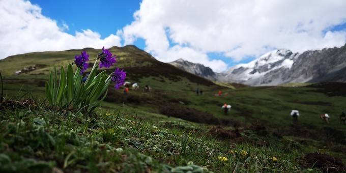 此时的海子沟,高山杜鹃盛开,路边野花也静悄悄的开放。