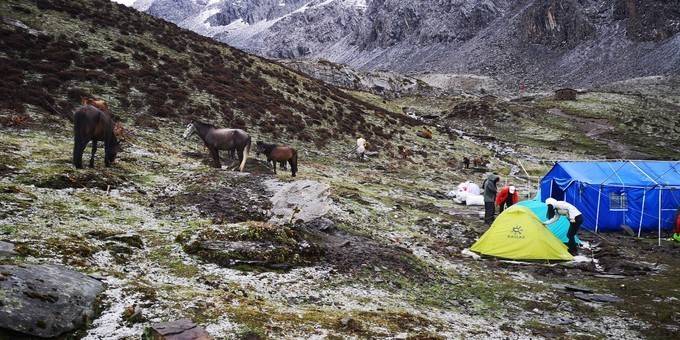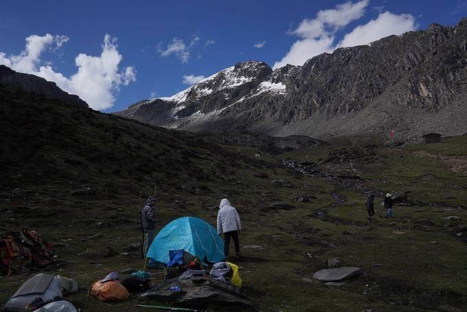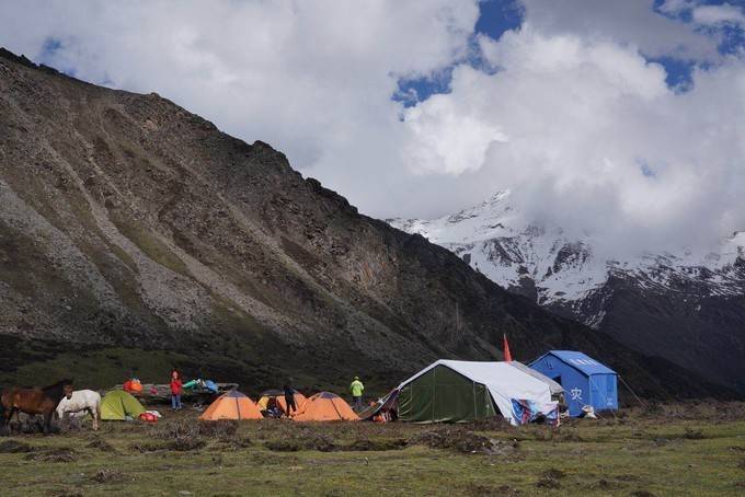 先后抵达大本营,开始搭设帐篷。