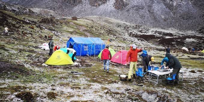 天气突变,冰雹突降,幸好我们已经入住帐篷。