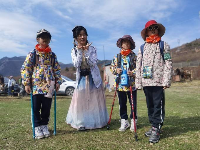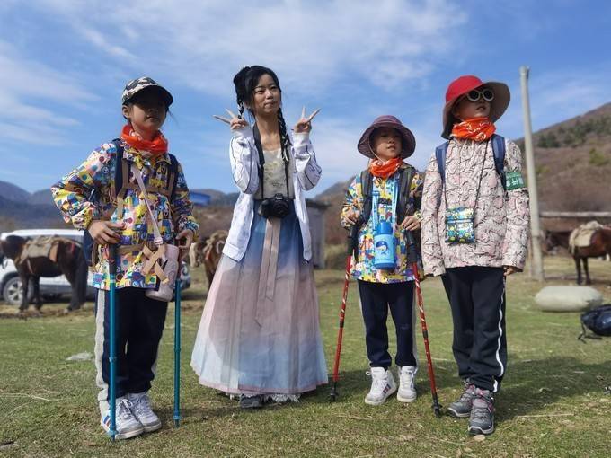 同车,两个九岁双胞胎妹妹,和一个十岁小妹妹,还有一个“网红”小姐姐,看到她们四人,大家徒步就有信心了。