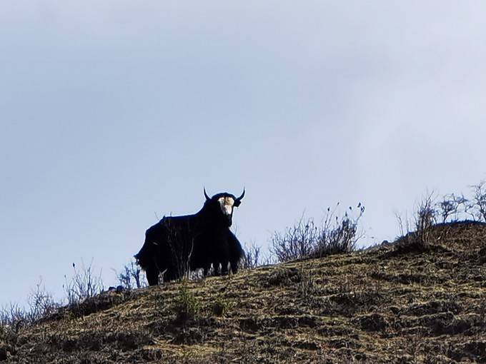手机长焦,远拍山脊上的牦牛。