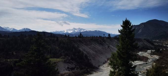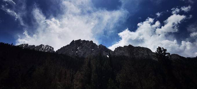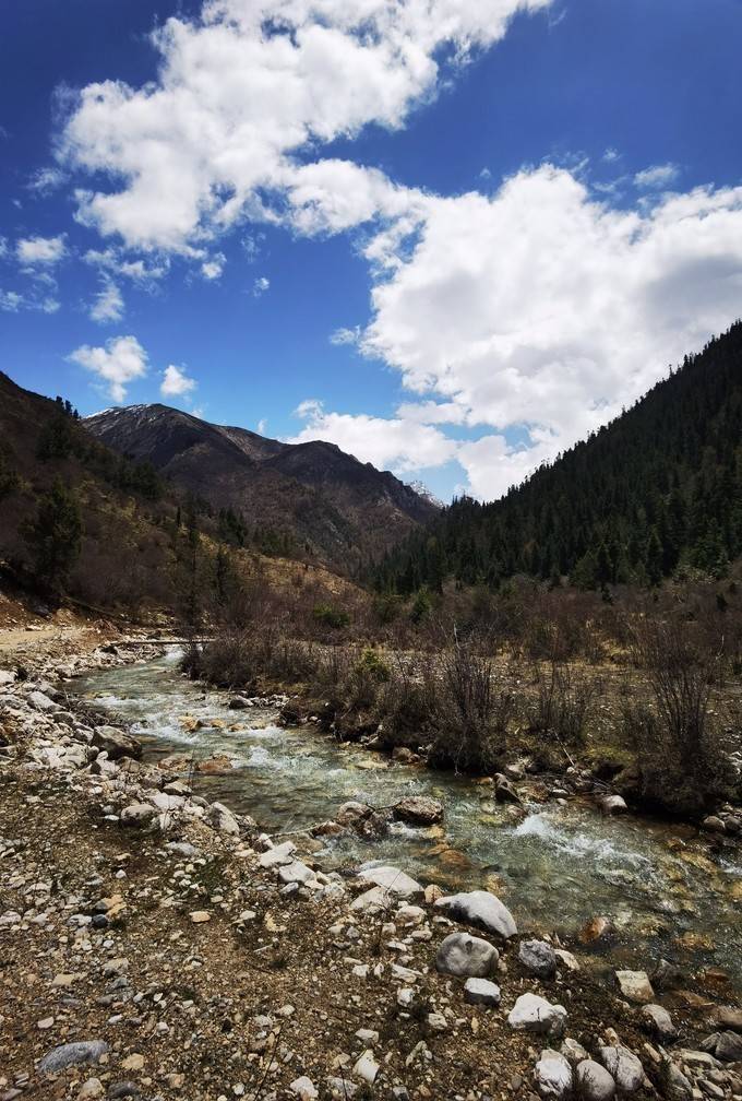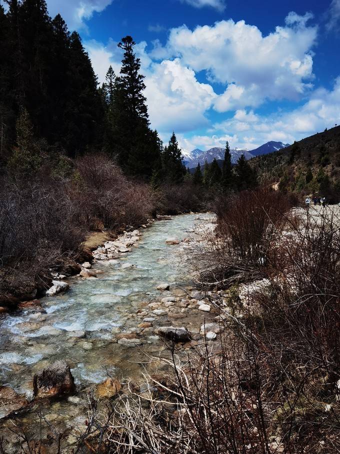 这就是露营地的自然风光,雪山、小溪、密林......