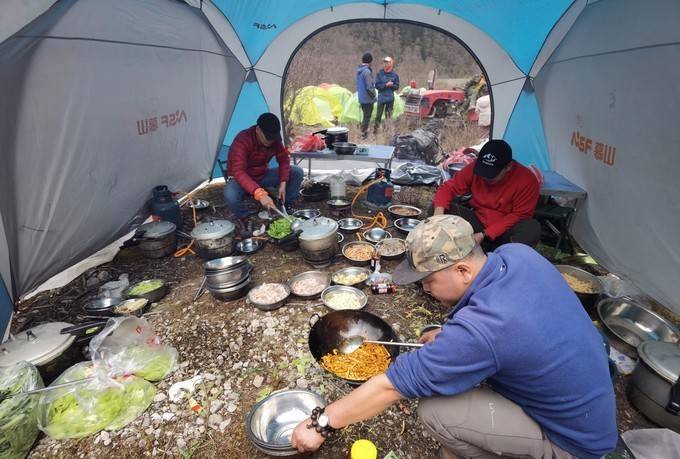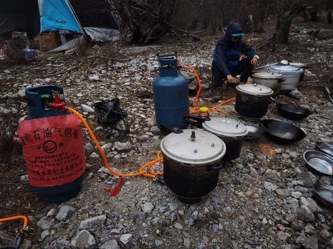 路边,其他团队的营地,炊烟袅袅。