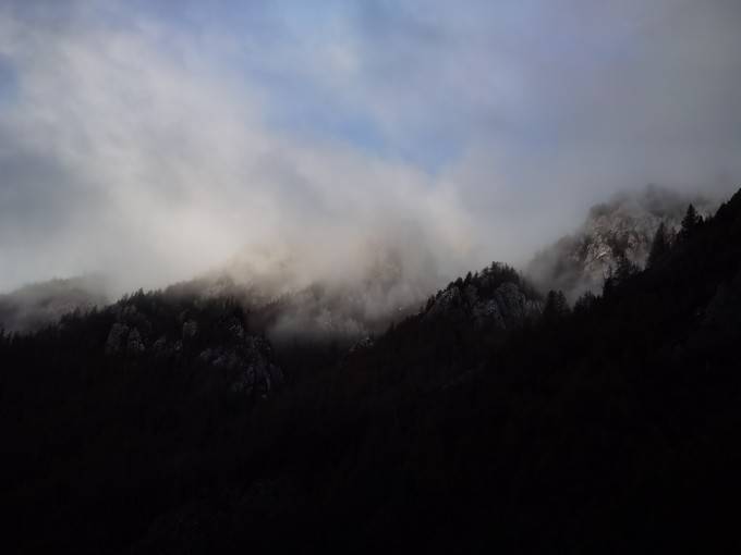 终于登上大客车,圆满完成了我们徒步七藏沟的行程。此时,窗外飘起鹅毛大雪。
