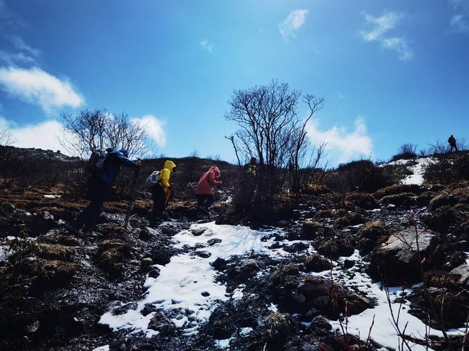 电闪雷鸣、冰雹、大风、大雪、大雨……都遇见了,还有道路泥泞,登峰难度极大。