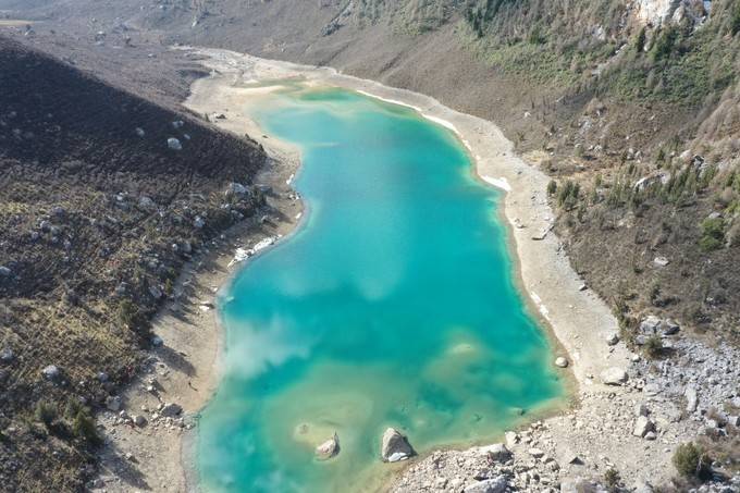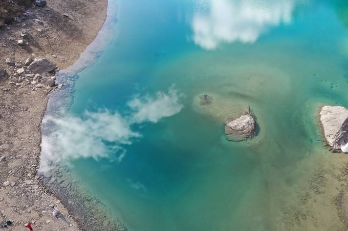 来到 长海 子,升起无人机再说。