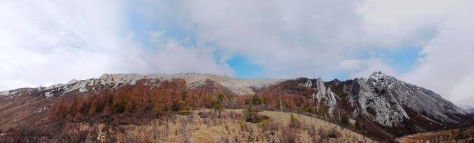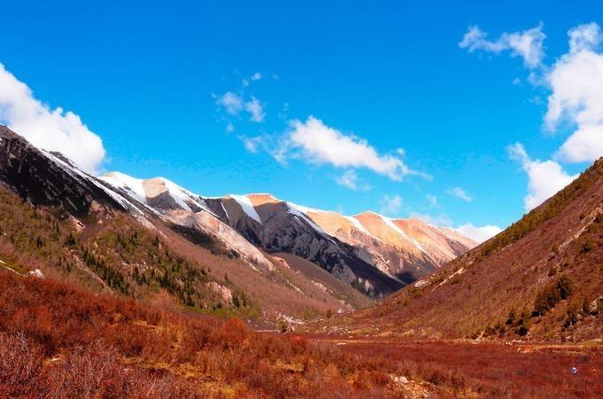 如果秋季(国庆前后),五彩斑斓,秋高气爽,蓝天白云,绝美。
