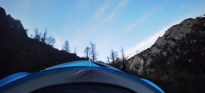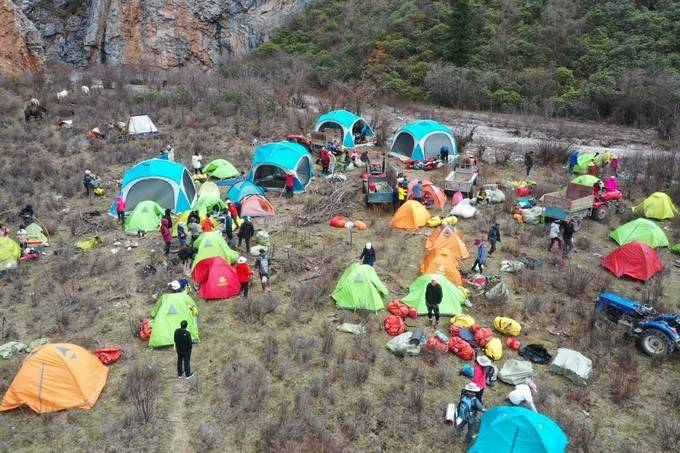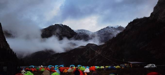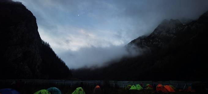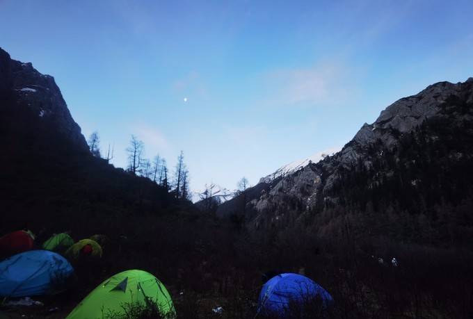 长途跋涉16公里,进入了鱼海子营地。这里海拔3700米。