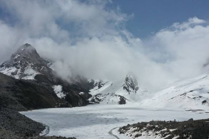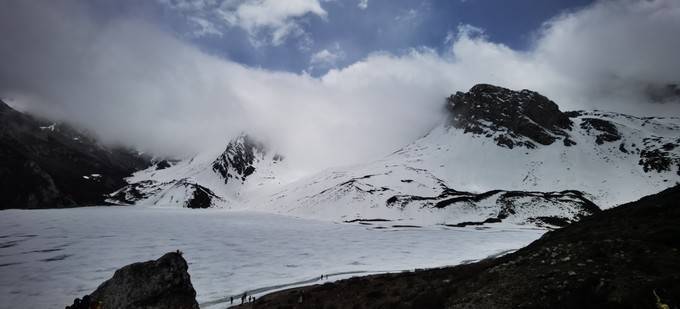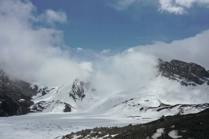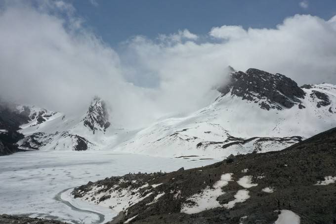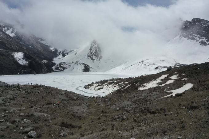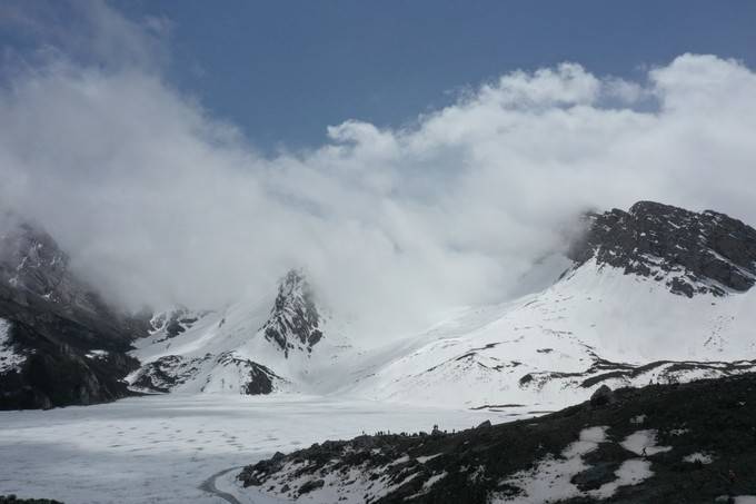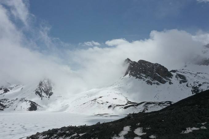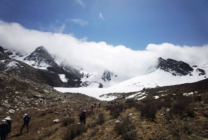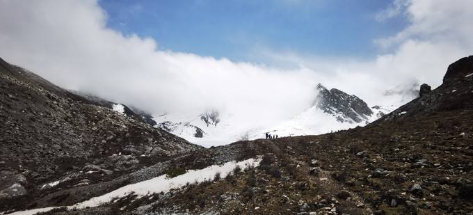 要从3700米营地开始,翻越4200米雪山,这一天是最为辛苦的。