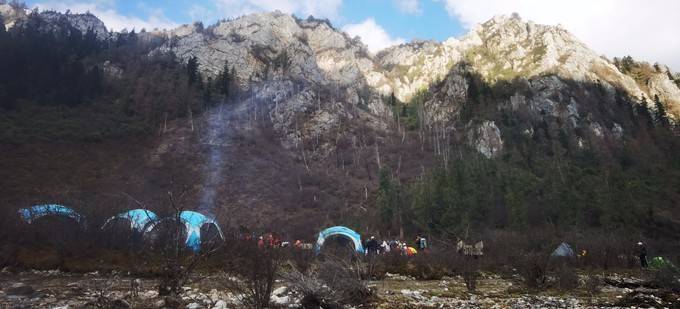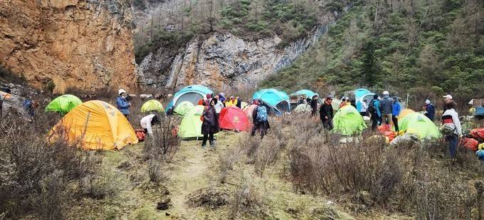 所谓秘境,已不神秘。五一,我们足迹户外就有五车一百三十多人参加。外加其他团队,估计我们有五百人进入七藏沟。