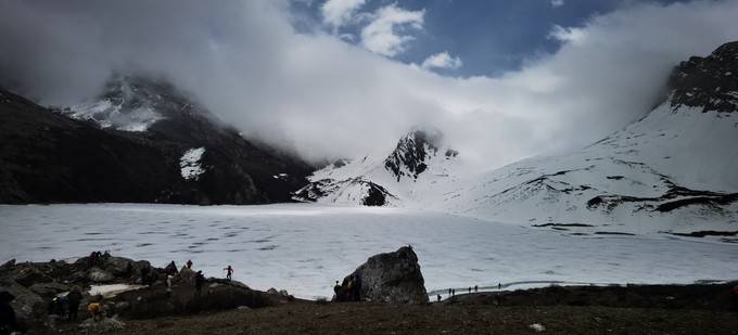 垭口平台,走一小段路,就看见 红星 海子,居然是冰湖。