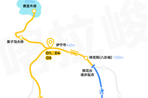 伊宁-(车程约110km,约2H)果子沟大桥-(车程约30km,约0.5H)赛里木湖-(车程约140km,约2.5H)伊宁