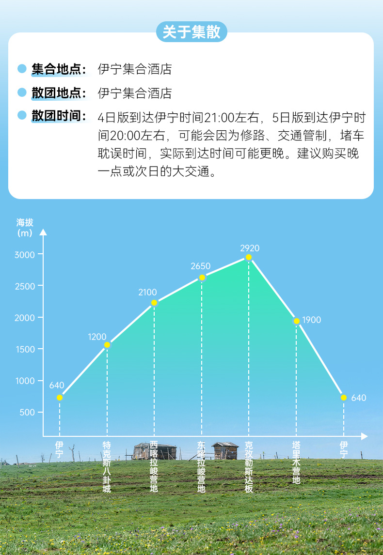 集合日晚上19:00整,领队会与大家开行前会,时间若有调整会另行通知。