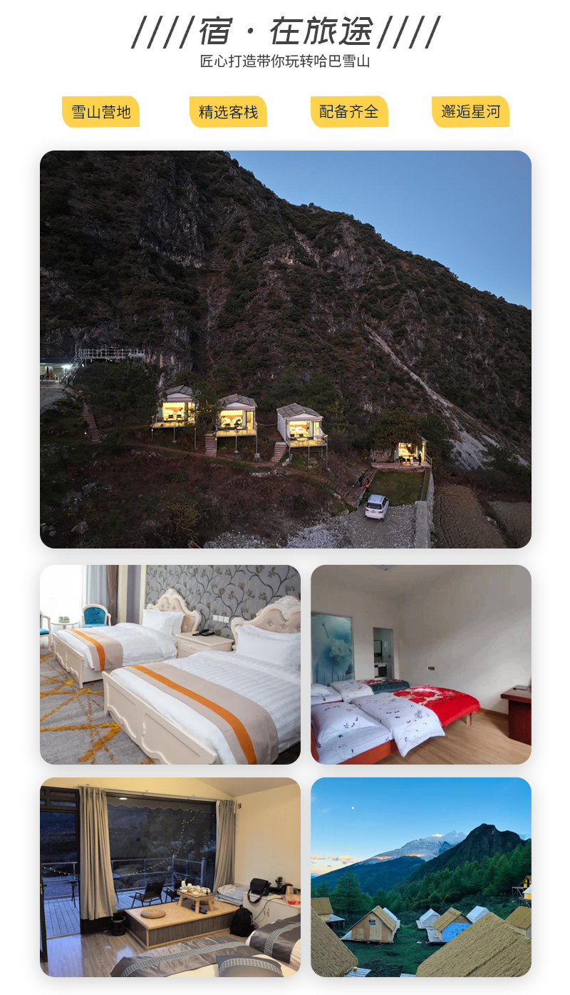 7、哈巴村食宿、大本营食宿、B线兰花坪食宿等