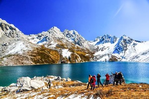 早餐之后,我们将前往长海子。长海位于卡卡沟尾部,是一条狭长型的高原湖泊,碧绿的湖水,十分宁静。湖泊上部是高山雪水融化流淌而来湖水清澈透底,还可以看见溪水流淌而下,在湖泊里面形成的蜿蜒水道,形势像盘旋的龙。之后我们开始翻越长海垭口。长海垭口海拔约4200米,从长海翻越主要是路途较短,由于海拔较高,翻越时十分辛苦。到达垭口时,就可以欣赏到红星岩壮观的景象,周围的雪山,卡卡沟和阿翁沟风光。下山以后,我们就进入了阿翁沟,下山的道路有一段是流沙石路段,有点难走,后面经过一处高山牧场,在一路往下进入森林走出森林就进入鱼海子。最后我们将前往红星海,中途会经过一处非常平整的山坳,山坳是一处干枯的湖泊,现在里面长满了草,非常茂盛,有一些湖水会偶尔渗出来叫“草海”。再往上走,到达红星海垭口的下边