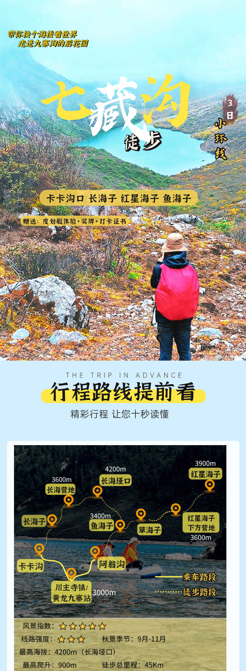 海拔:长海子约3750米,垭口约4200米,鱼海子约3400米、红星海下方营地3600米