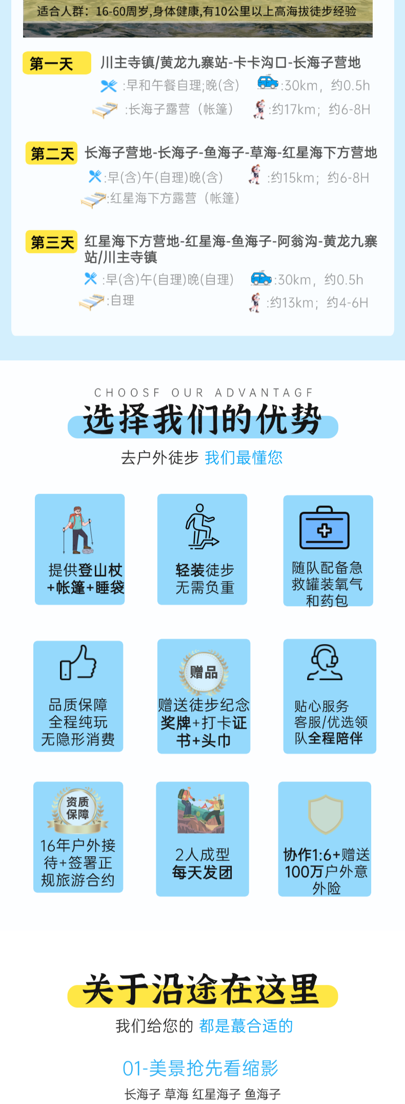 1.交通:含川主寺至卡卡沟车费,渔海子至川主寺车费。