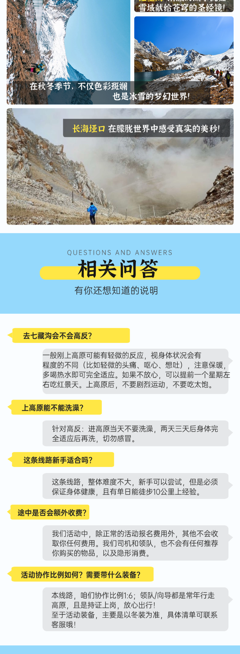 5.驮运:已包含下车点至营地装备运输费用(个人行李限重10kg)。