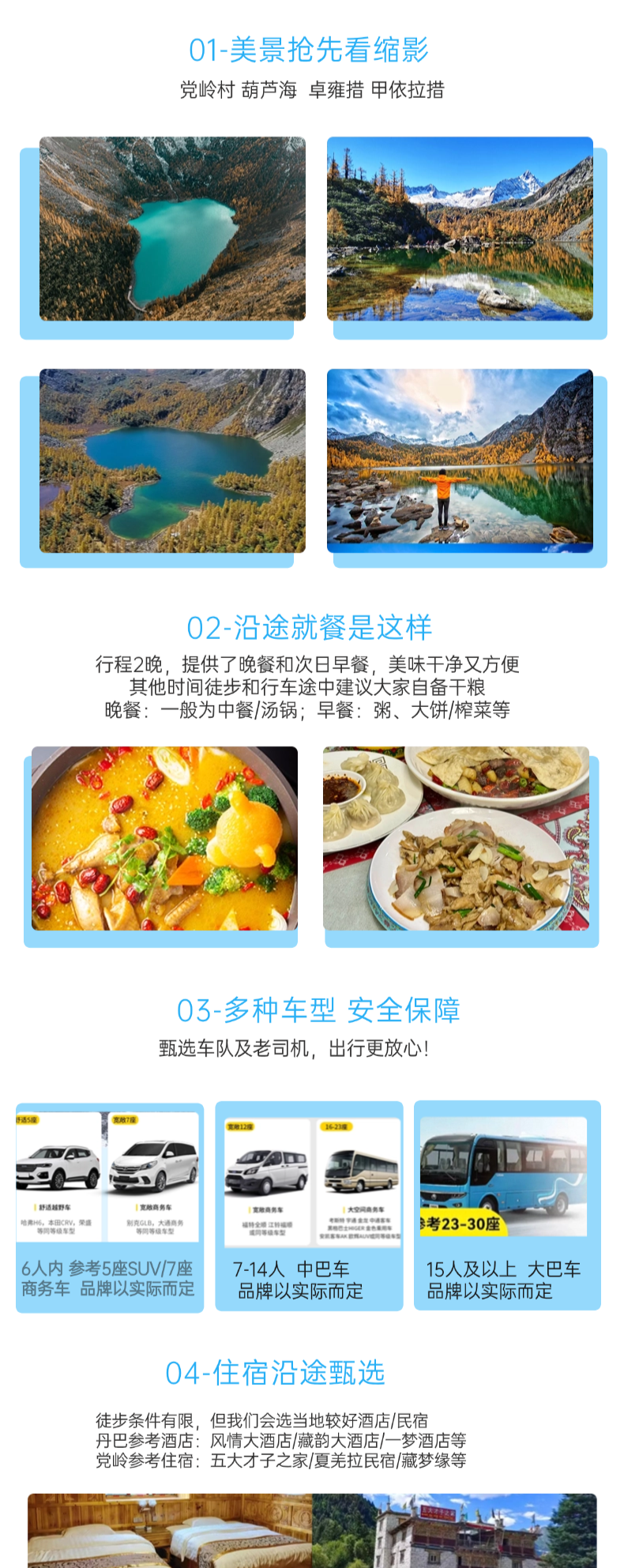 餐饮:含酒店早餐,午餐自理,含丹巴/藏家晚餐