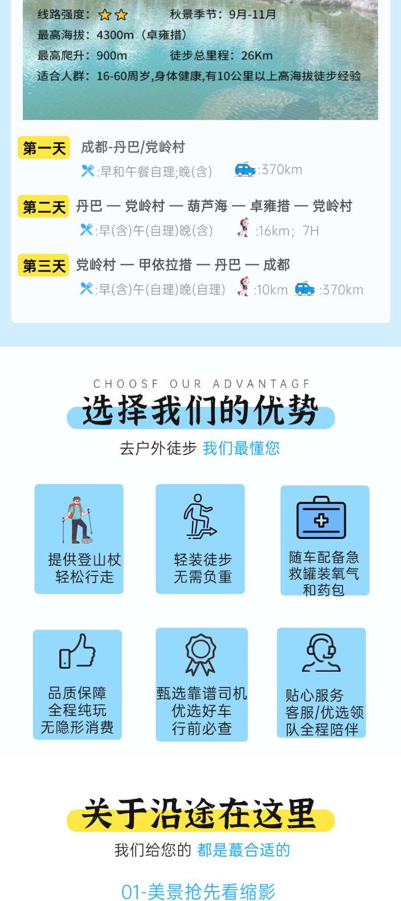 3.若在节假日旺季,四姑娘山堵车情况下,则会绕道去丹巴或党岭村。