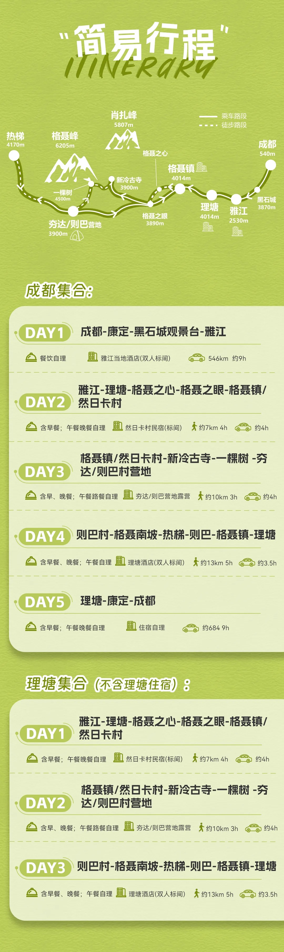 1、交通:全程进山往返费用;(理塘集散不含成都-理塘往返交通)