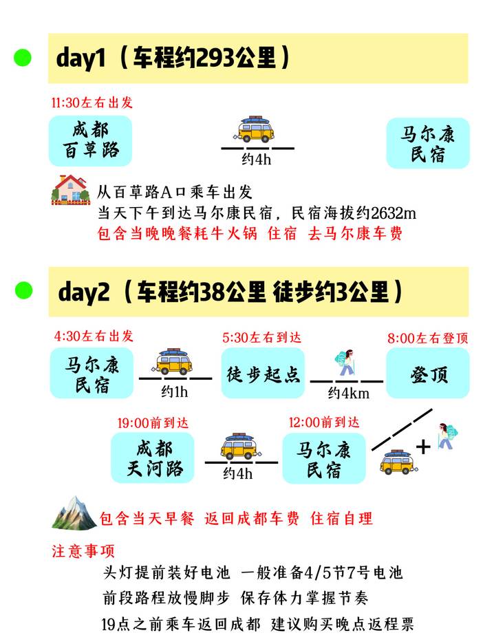 • 包含从成都出发到马尔康往返车费